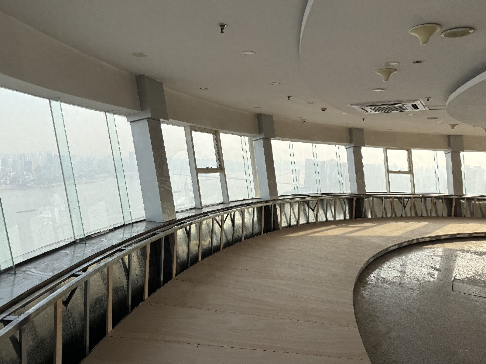 “施工最大难点是运输。”徐先生解释,原有电梯尺寸小,所有部件必须‘瘦身’才能运输,否则进不了电梯。”改造完成后,为验证平稳性,团队采用传统方法:在转盘上立一支铅笔,可以稳立不倒。“旋转餐厅载的是游客,舒适性很重要,我们也等着开放,期待给游客带来的效果。”他说。