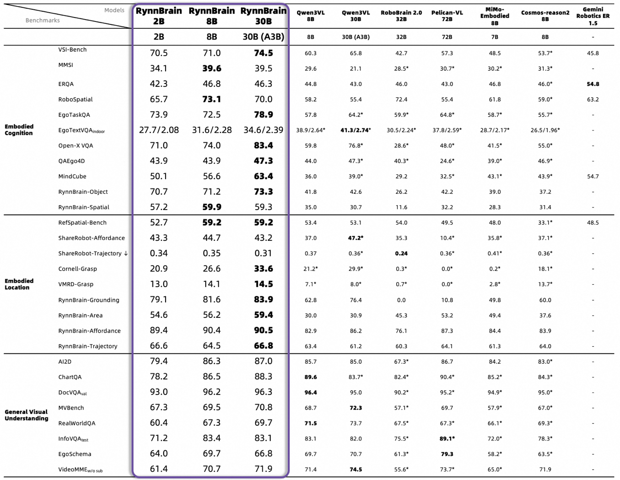 硅谷还在苦等真机数据,中国队已先一步交卷。RynnBrain大脑横空出世,通用具身智能时刻更近了。2月10日,阿里巴巴达摩院发布具身智能大脑基础模型RynnBrain,并一次性开源了包括30B MoE在内的7个全系列模型。RynnBrain首次让机器人拥有了时空记忆和空间推理能力,智能水平实现大幅跃升,在16项具身开源评测榜单上刷新纪录(SOTA),超越谷歌Gemini Robotics ER 1.5等行业顶尖模型。