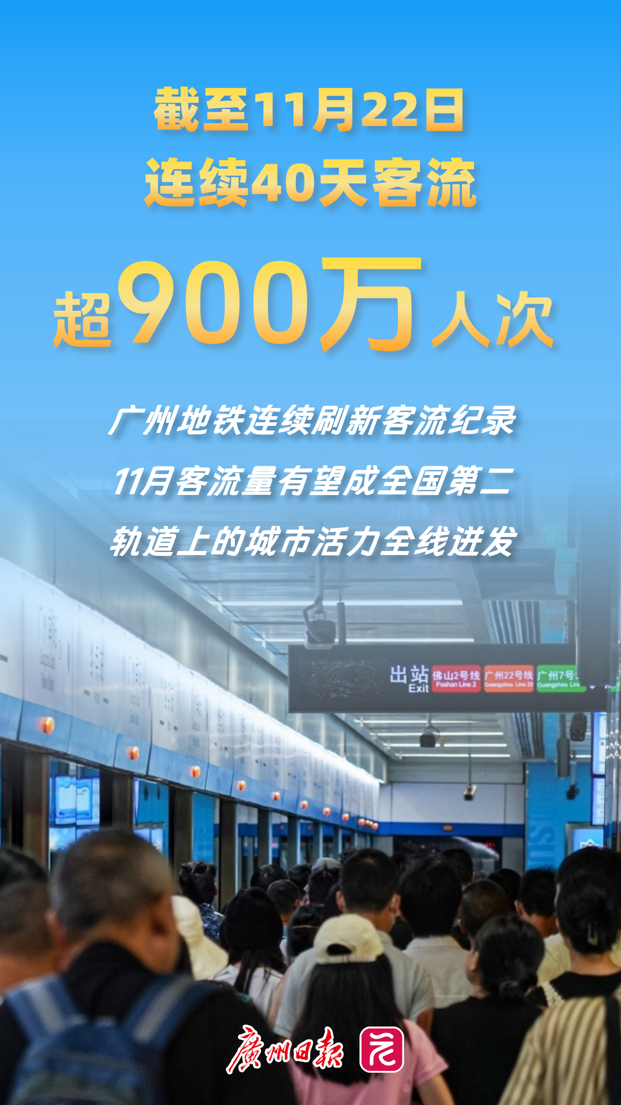 破纪录!广州地铁客流连续40日超900万人次,11月有望成全国第二