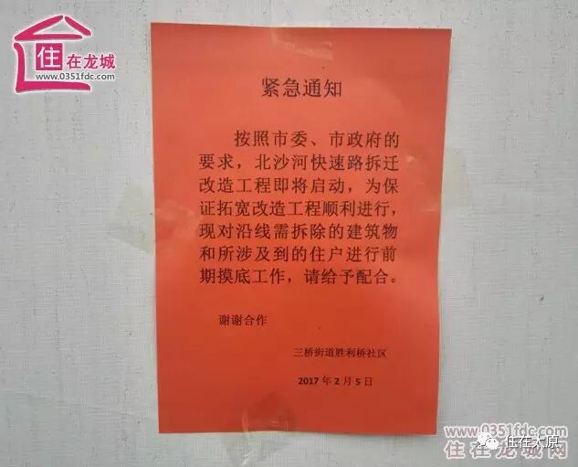 北沙河将打响2017年太原城建改造第一枪。2017年1月初,太原规划网官发布关于北沙河沿线片区改造规划设计方案的征集公示。2月3日下午,也就是新年上班的第一天正月初七,耿市长奔赴北沙河调研。目前北沙河快速路正在进行勘测,北沙河沿岸建筑的拆迁范围已经标记完毕,关于北沙河沿线拆迁的通知已经公布。