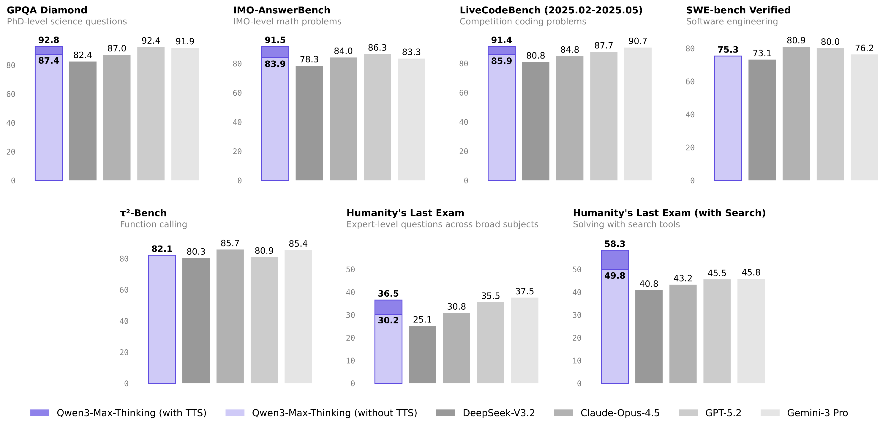基于这一推理技术创新,千问推理性能和推理效率大为提升,比如在启用工具的“人类最后的测试”HLE中,千问得分58.3,大幅超过GPT-5.2-Thinking的45.5、Gemini 3 Pro的45.8,录得当前所有模型的最高分。