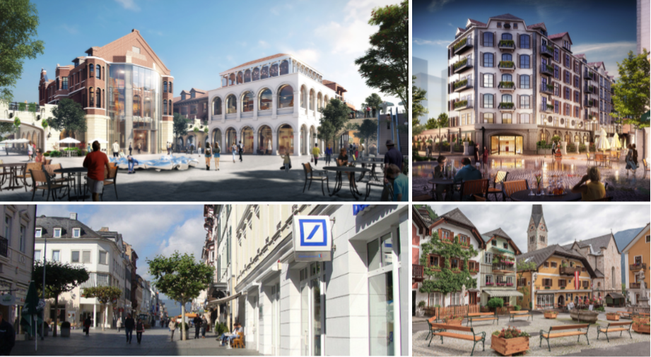 区域内涉及文化展览、创客空间、餐饮、旅游服务、艺术零售等。引入联合办公等新兴创意产业,与租界旧址开埠历史文化相融相生。 B区 街区新生:西式田园休闲风格-商业升级区 该区域位于原租界旧址区主要街道湓浦路的南侧,作为租界时期历史文化展示区与大中路历史街道的联系片区,新建建筑在造型上采用与租界旧址西式风貌区协调的西式田园风格,突出租界旧址区的整体风貌。作为商业升级区,形成悠闲、放松的氛围。寻求整体风貌和谐的同时,点缀足够明显的当代元素,并保持与大中路沿街商贸建筑风格和而不同,使新建区域与历史建筑区明确可辨,不生混淆,强化多元融合的整体风貌特色。