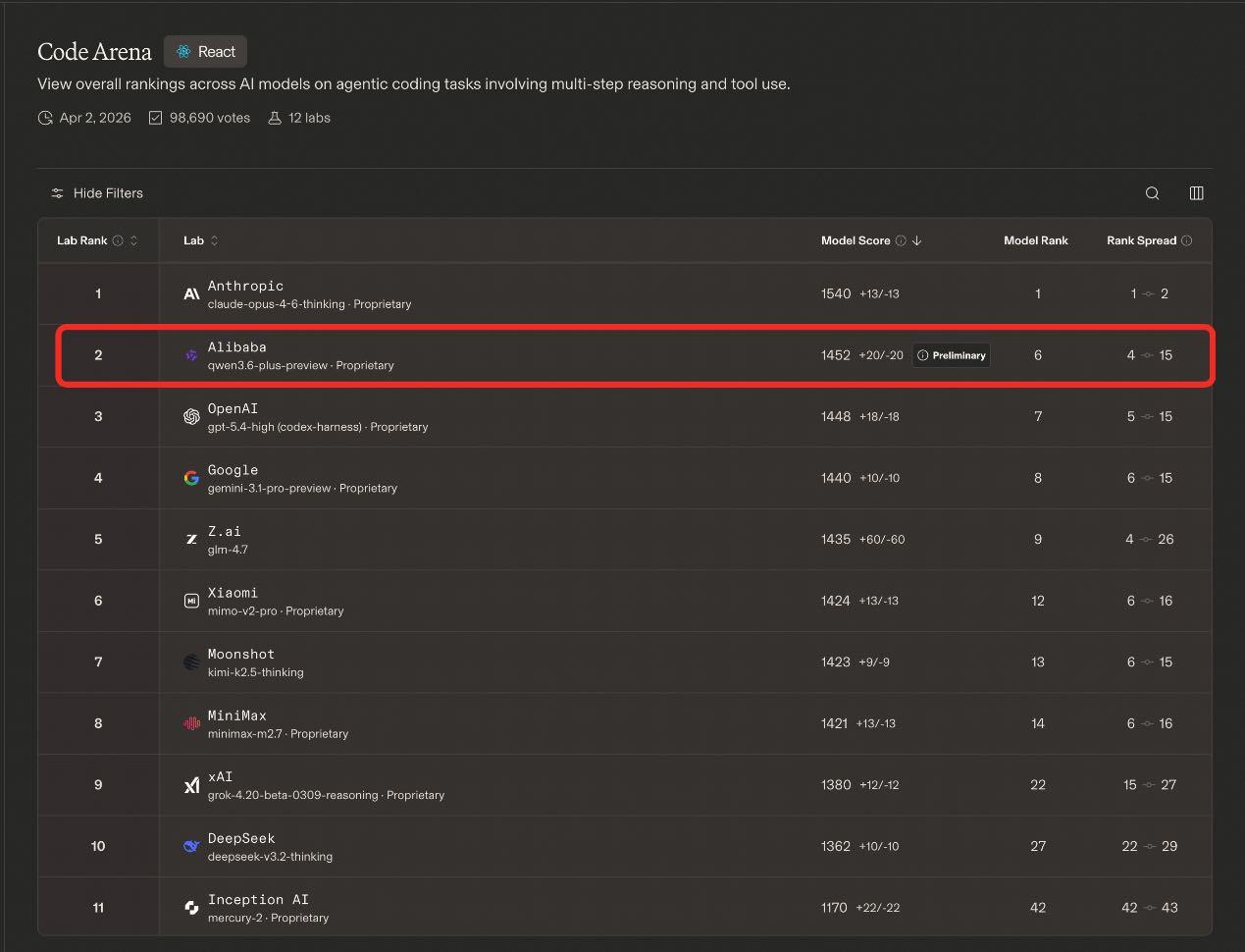 4月2日,阿里千问发布新一代大语言模型Qwen3.6-Plus,已通过阿里云百炼 API 开放调用。千问3.6整体性能较3.5进步显著,并且涌现出极强的智能体编程能力,在系列编程能力权威评测中,千问3.6编程表现超越2倍乃至3倍参数量的GLM-5、Kimi-K2.5等模型,成为当下编程能力最强的国产模型,接近全球最强编程模型 Claude 系列。