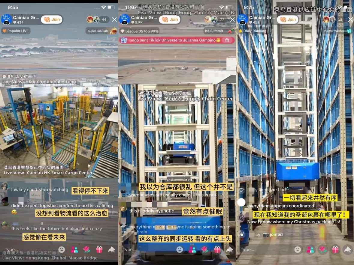 这是一场持续4小时的沉浸式慢直播。没有剪辑处理,也没有加速推进,镜头只是静静地跟随一件件包裹,在自动化仓库里被取出、运送,在智慧货运中心里被组托、打包。对于不少海外网友来说,这条传送带上的包裹,很可能正是他们即将收到的圣诞礼物。一位美国网友在直播间留言:“Now I know where my Christmas package is!”——真正做到在线“盯梢”自己的订单。